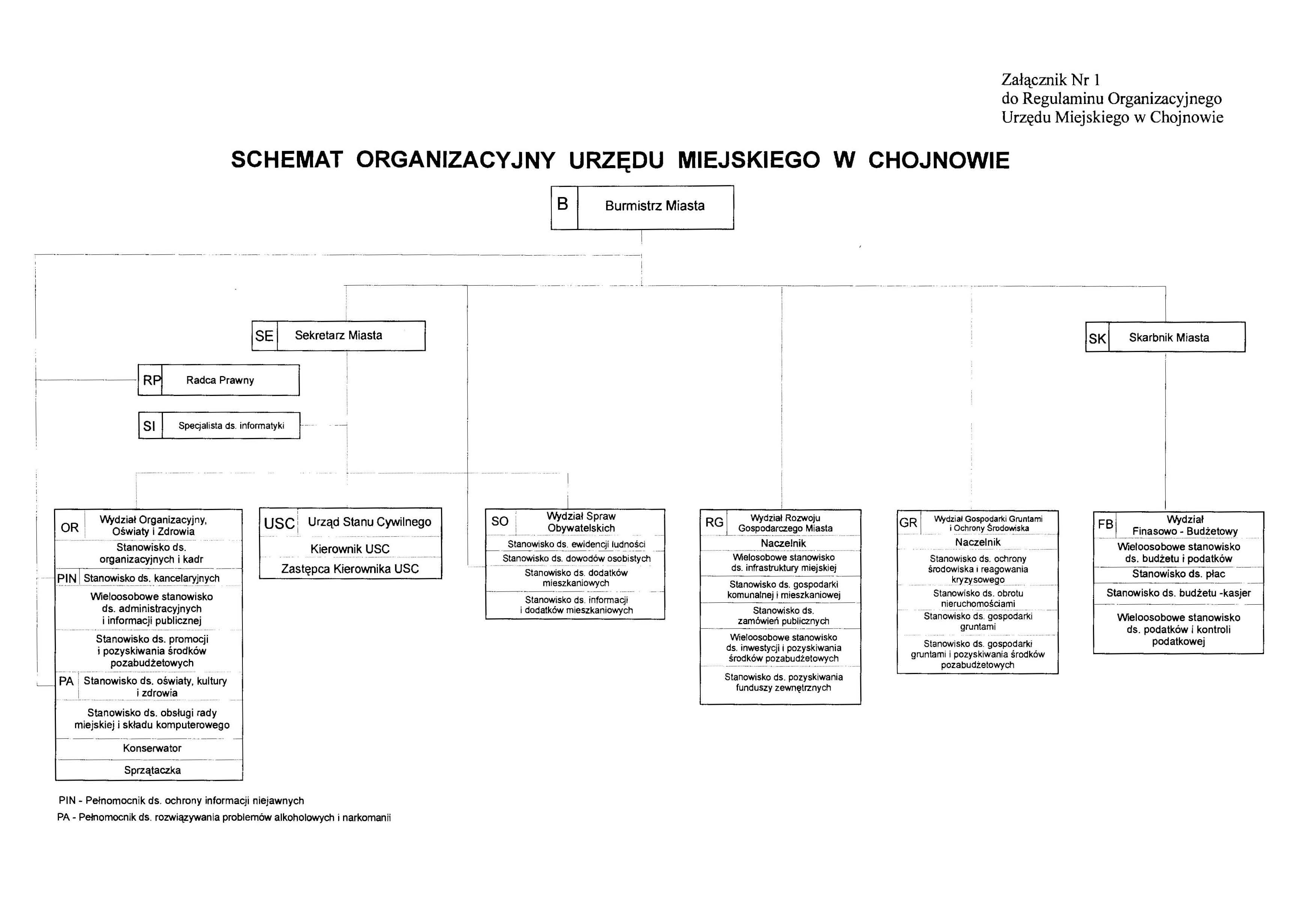 | Z uwagi na duży rozmiar pliku, schemat organizacyjny naszego Urzędu znajduje się w załączniku, który można sobie otworzyć w oknie przeglądarki lub zapisać na dysku swojego komputera. Opublikowany schemat pozwoli Państwu na szybkie dotarcie do właściwego wydziału, do którego będziecie chcieli się skierować, odwiedzając w przyszłości nasz Urząd. |