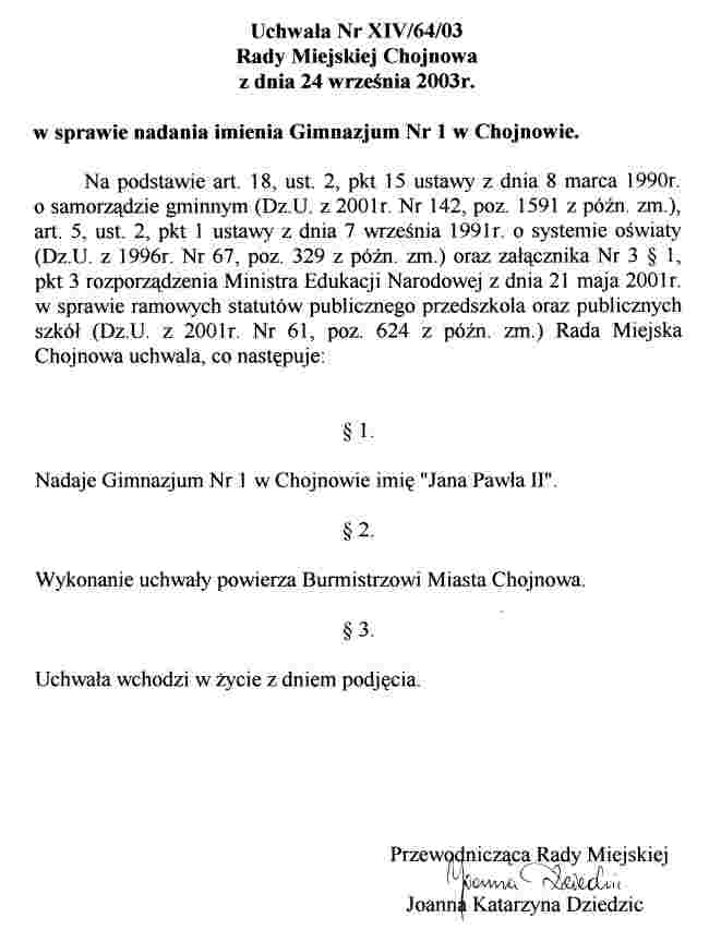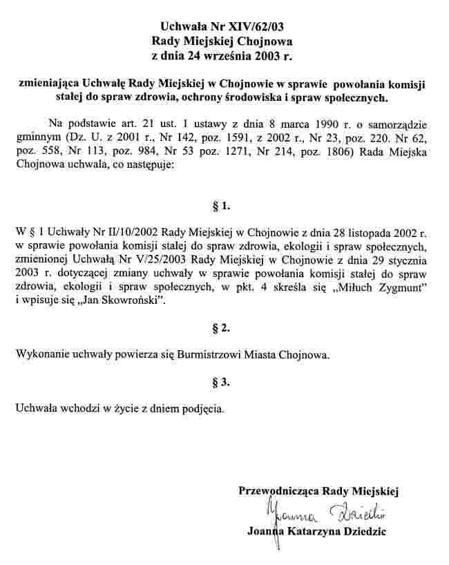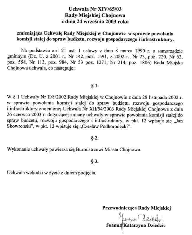 | Osoba, która odpowiada za treść: | Przewodniczący Rady Miejskiej Chojnowa |
