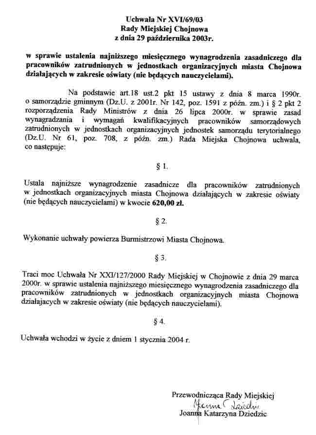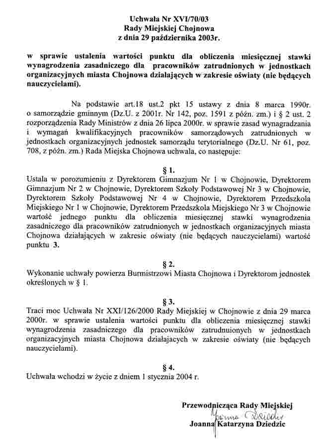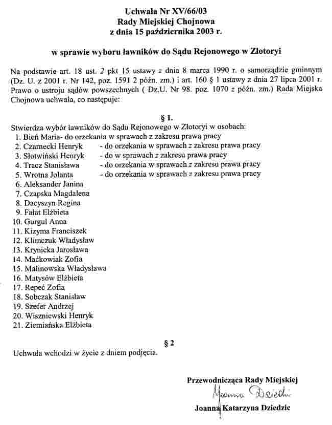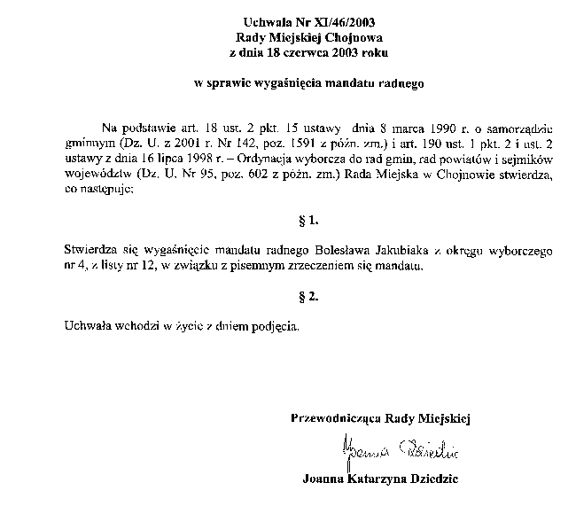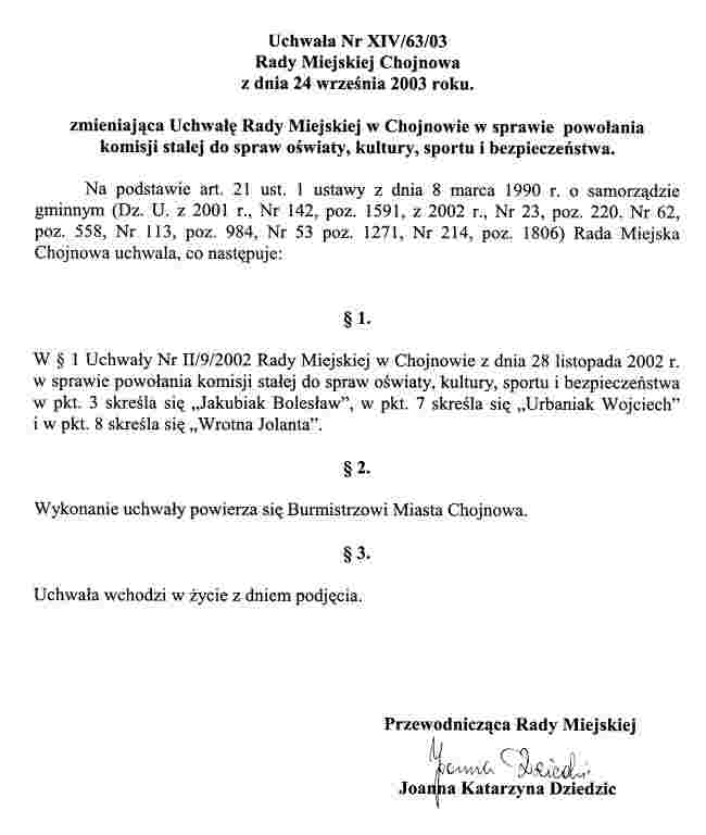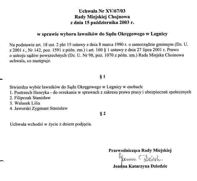 | Osoba, która wytworzyła informację: | Przewodniczący Rady Miejskiej Chojnowa |