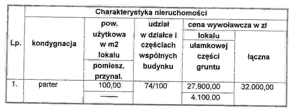 pierwszy przetarg ustny nieograniczony na sprzedaż lokalu użytkowego nr 2 położonego w budynku użytkowym przy ul. Legnickiej 69a w Chojnowie, na działce oznaczonej numerem geodezyjnymi 131/6 o pow. 173 m2, wraz z oddaniem w użytkowanie wieczyste ułamkowej części gruntu na lat 99, dla której Sąd Rejonowy w Złotoryi prowadzi księgę wieczystą Nr 25231.