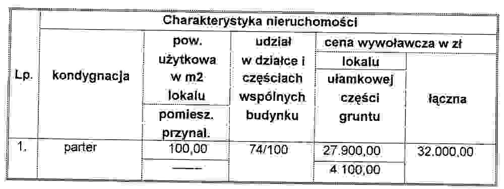 pierwszy  przetarg ustny nieograniczony na sprzedaż lokalu użytkowego nr 2 położonego w budynku użytkowym przy ul. Legnickiej 69a w Chojnowie, na działce oznaczonej numerem geodezyjnymi 131/6 o pow. 173 m2, wraz z oddaniem w użytkowanie wieczyste ułamkowej części gruntu na lat 99, dla której Sąd Rejonowy w Złotoryi prowadzi księgę wieczystą Nr 25231.
